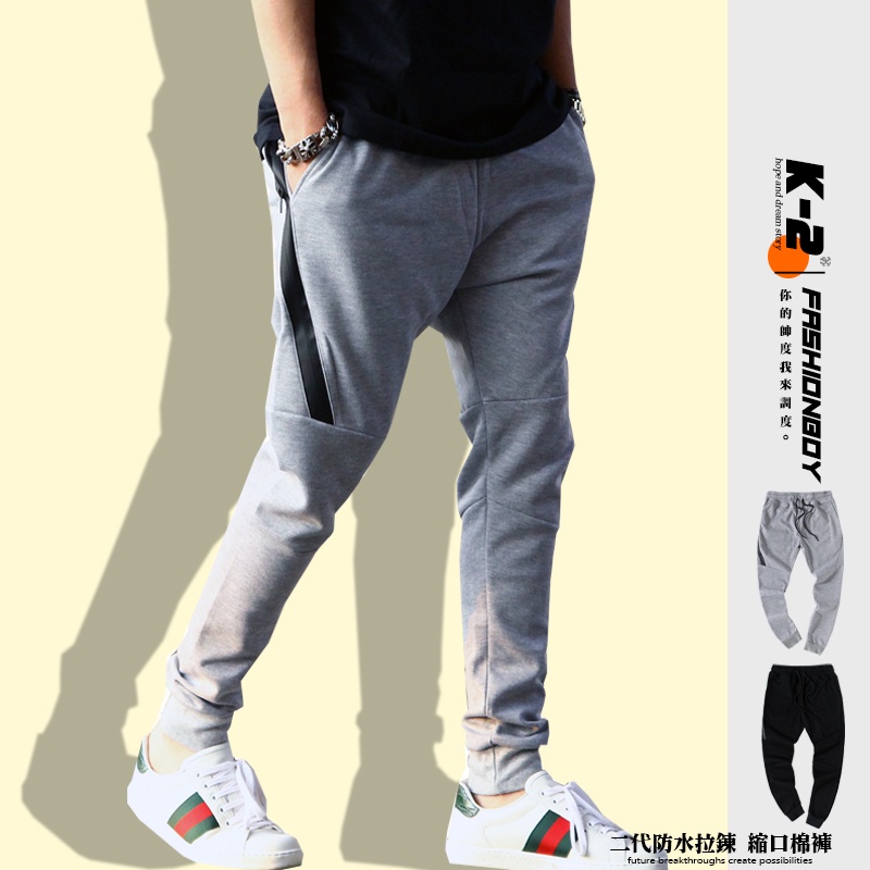 二代防水拉鍊 縮口褲 棉褲 剪裁 運動風 縮口棉褲 運動褲 休閒褲 縮口褲 K2 休閒長褲【Y20196】灰色M號|灰色L號|灰色XL號|灰色XXL號|黑色M號|黑色L號|黑色XL號|黑色XXL號JoggersK-2 Fashionboy