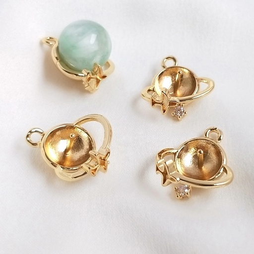 宏雲Hongyun-Ala–保包14K包真金色半孔珠托diy吊墜飛機繞地球采蜜蜂鑲嵌圓珠掛墜配件