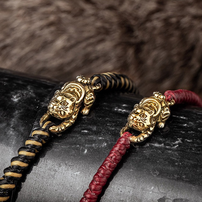 【JK銀飾】金虎爺 蠟繩手鍊/黃銅
