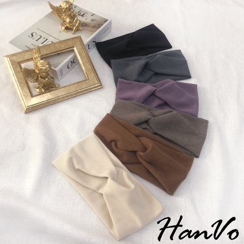 【HanVo】溫柔霧感色系寬版單扭結髮帶 韓國百搭簡約日常外出髮帶 韓系髮飾 女生配件 C03-8055奶茶|黑色|米白|霧灰|煙燻紫|霧灰咖|暖棕HeadbandsHanVo Wear Collection