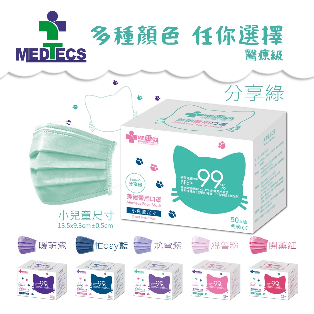 MEDTECS 美德醫療 美德醫用口罩【小兒童】 一盒50入尬電紫|脫魯粉|開薰紅|暖萌紫|分享綠|忙Day藍Medical Gloves & MasksMEDTECS 美德醫療