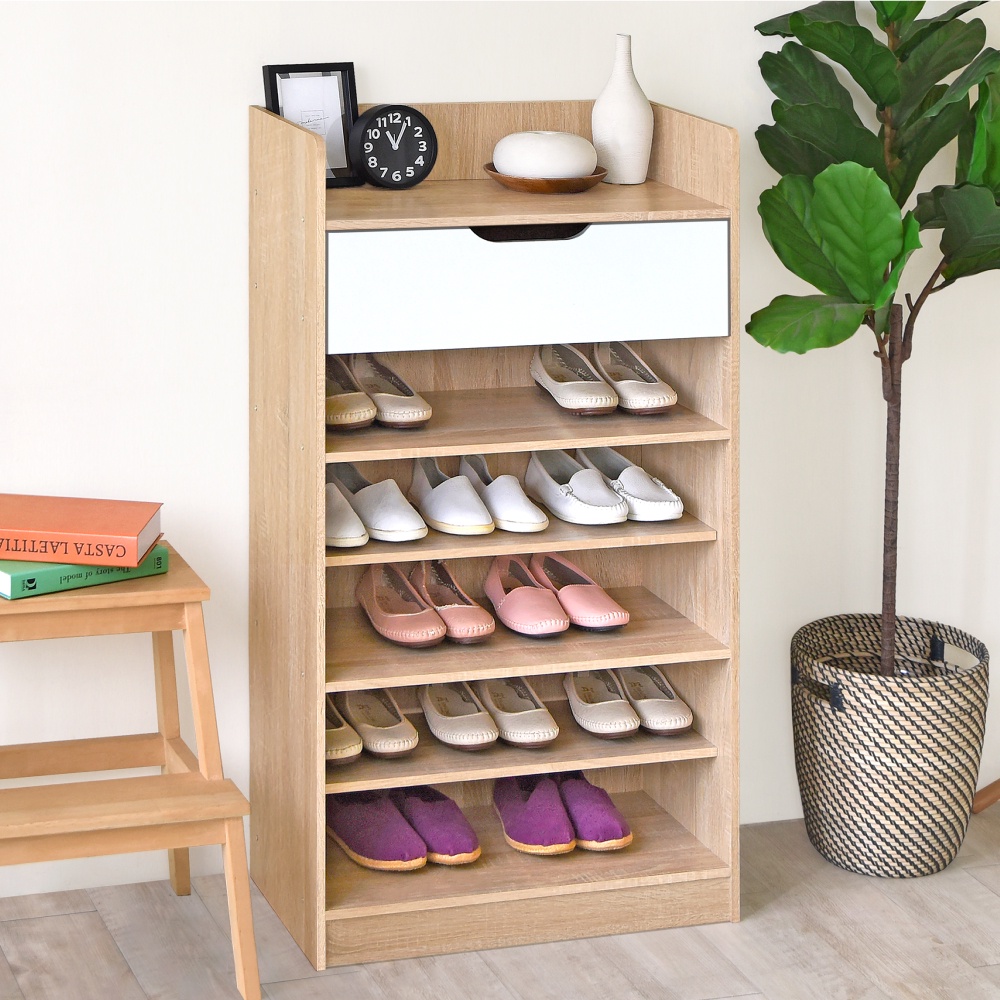 HOPMA艾爾七層一掀門鞋櫃 台灣製造 玄關櫃 開放收納櫃 置物邊櫃 鞋架C-1102D黑胡桃配拼版柚木|淺橡(漂流)木配白Shelves & RacksHOPMA 合馬家具