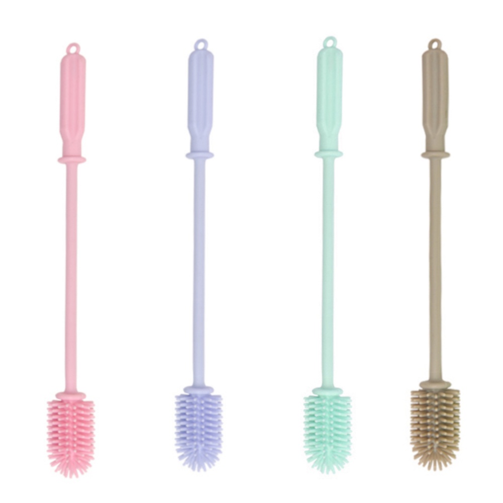 多用途環保矽膠材質長柄保溫瓶刷 奶瓶刷 奶瓶清潔刷 高腳杯清潔刷 360度無死角 矽膠細頭清潔刷櫻花粉|薄荷綠|暖灰色|天空藍Bottle-feedingHeine海恩後背包