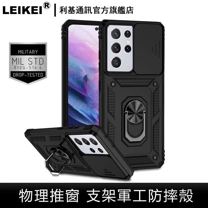 物理推窗 適用 三星 s20 ultra s10 plus s20fe手機殼 指環支架 鏡頭蓋 滑蓋磁吸 軍事軍工防摔殼