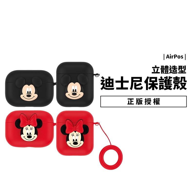 Disney 迪士尼 Airpods Pro 1/2代 立體矽膠 保護殼 保護套 耳機殼 米奇 米妮 防丟指環 軟殼
