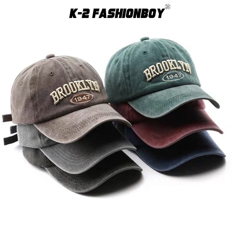 【K-2】BROOKLYN 1947 立體刺繡 水洗老帽 老帽 古著 水洗 刷舊 帽子 情侶 帽 布魯克林【KM92】黑色|酒紅色|咖啡色|軍綠色|灰色|藏青色K-2 Fashionboy