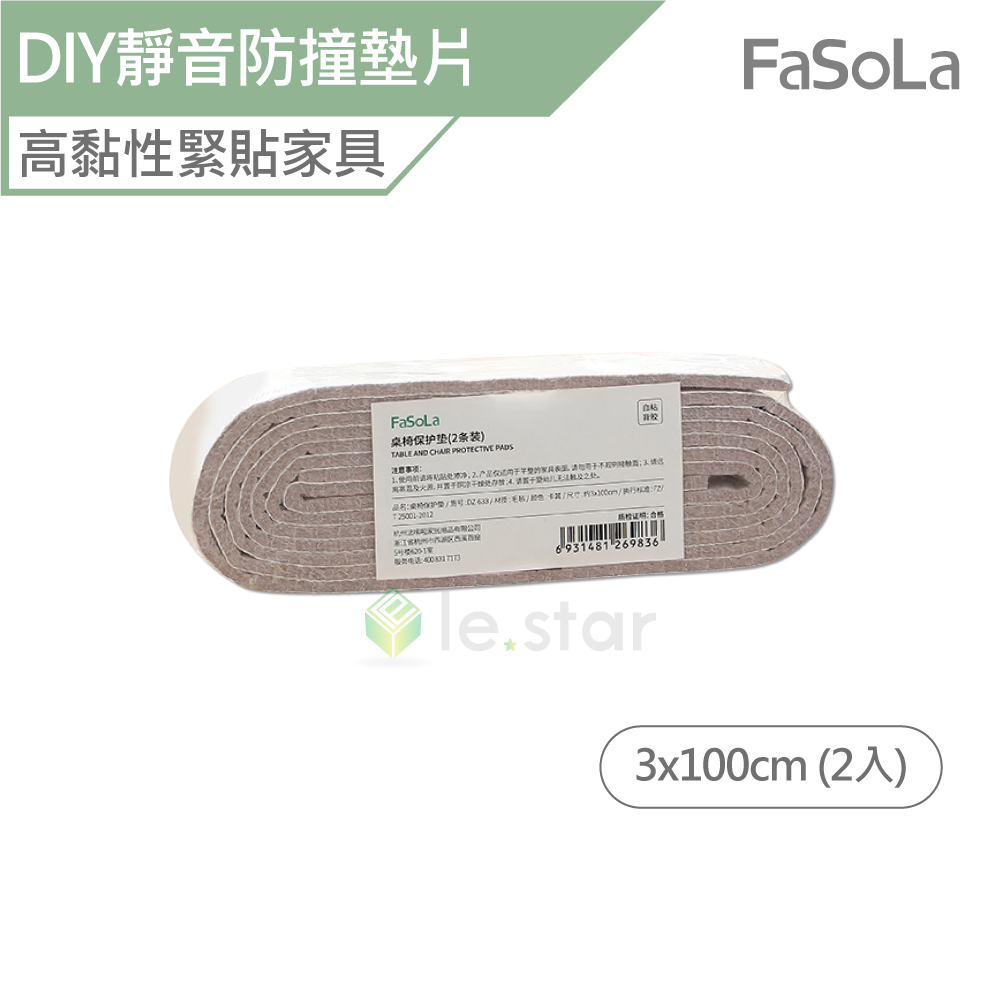 FaSoLa 多用途可剪裁DIY靜音耐磨防撞墊片 3x100cm (2入) 公司貨 桌椅腳墊 保護家具墊 加厚毛氈 高黏