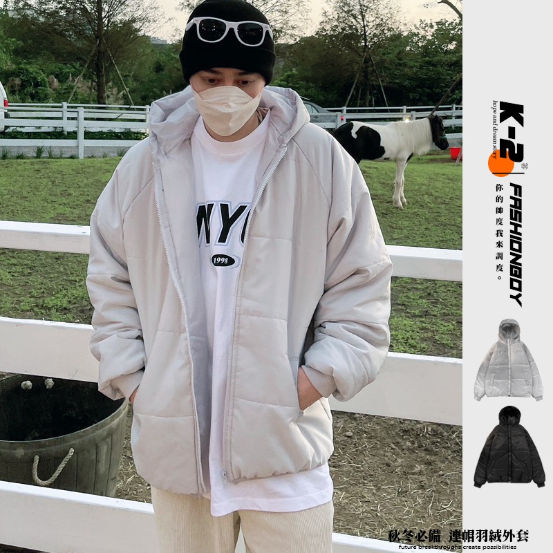 【K-2】連帽羽絨外套 秋冬必備 鋪棉外套 連帽外套 輕便 鋪棉 外套 情侶 落肩 寬鬆 K2 羽絨外套【K888】