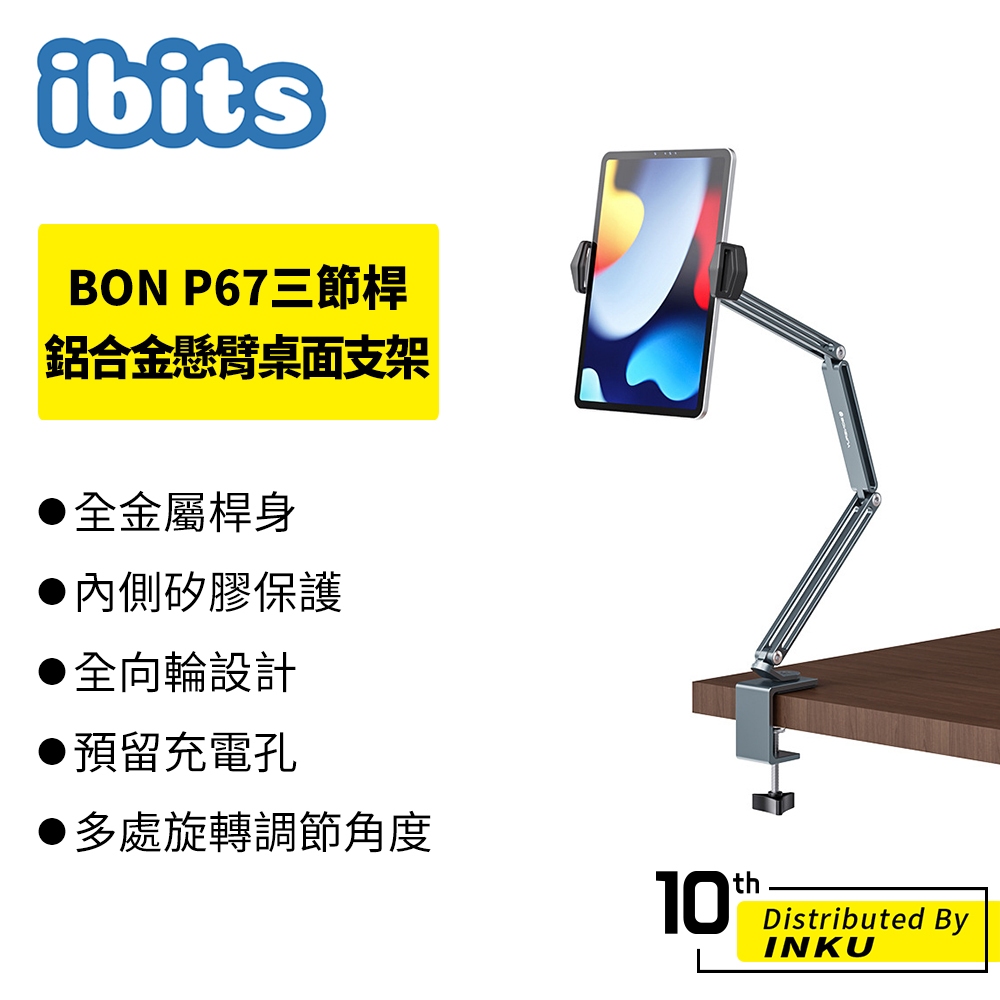 ibits BON P67 三節桿鋁合金懸臂桌面支架 平板懶人支架 床頭懸臂折疊支架 可旋轉調節角度 網紅直播 桌面支架