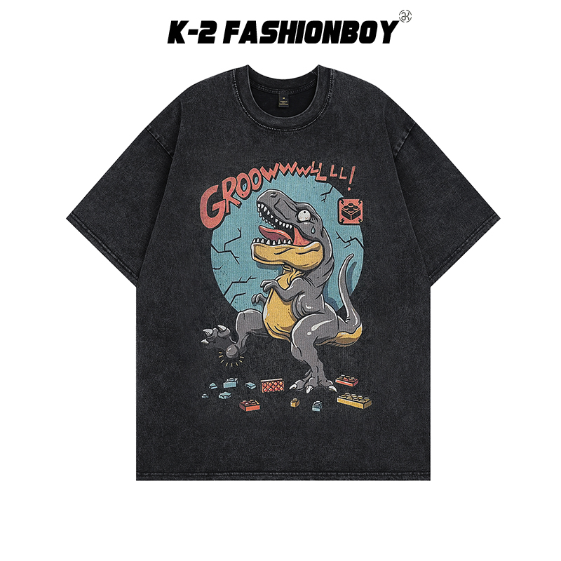 【K-2】GROOWWWLLLL! 超可愛 恐龍 Q版 漫畫 暴龍 樂高 水洗 刷舊 寬鬆 落肩 短袖Tee【A378】XL|XXL|M|LT-ShirtsK-2 Fashionboy