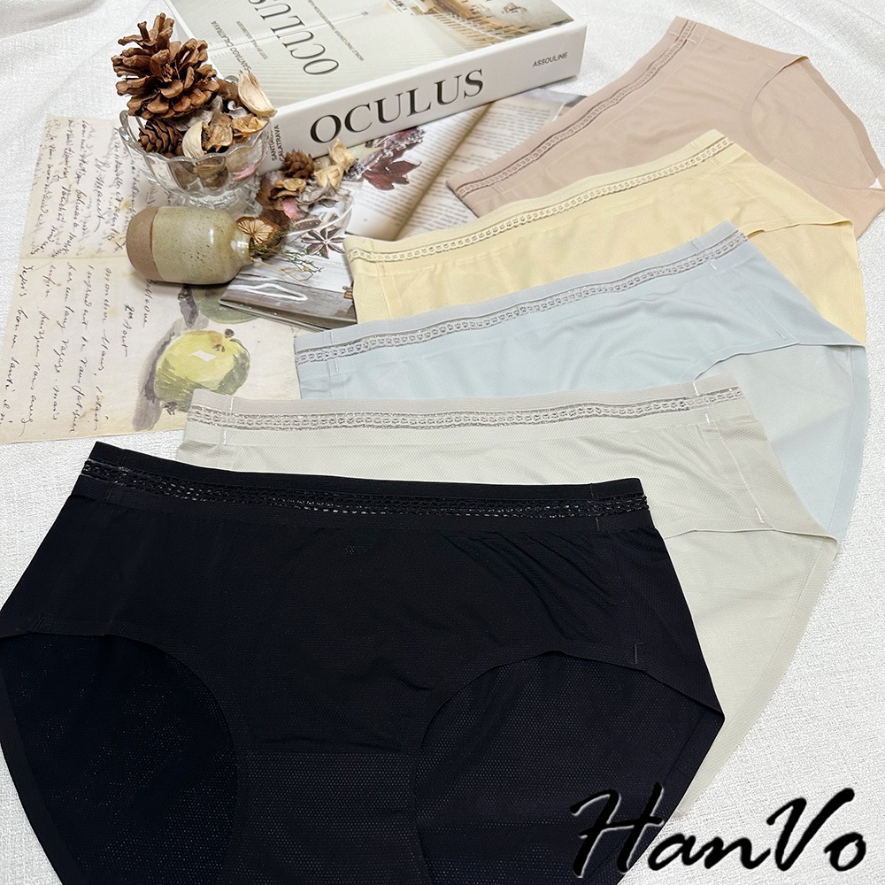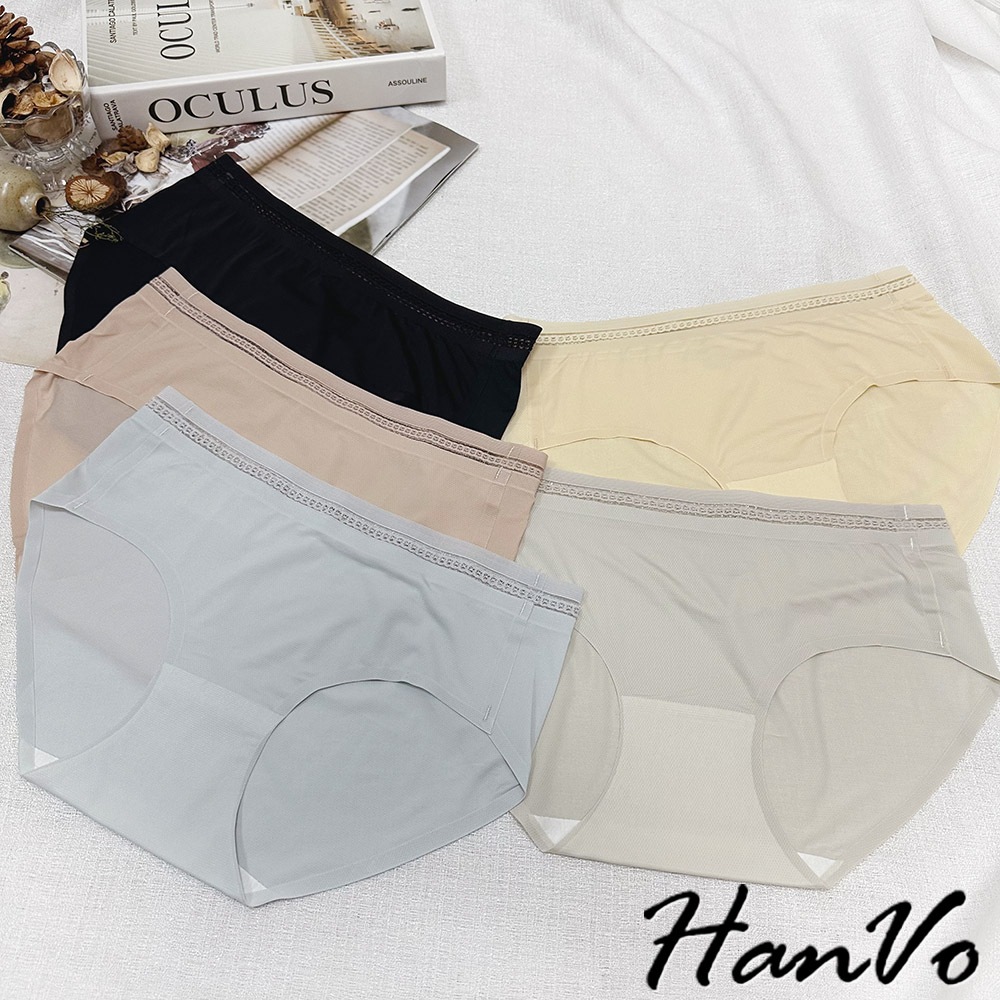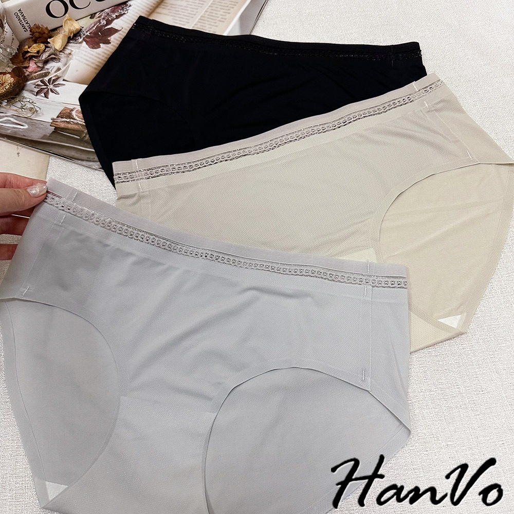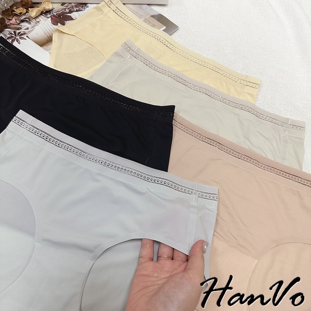 【HanVo】薄款透氣洞洞冰絲內褲 輕盈涼感速乾三角褲 獨立包裝 中腰 流行少女內褲 內著 A11-5206象牙灰|探險黑|柔沙粉|柔亮膚|冰心藍PantiesHanVo Wear Collection
