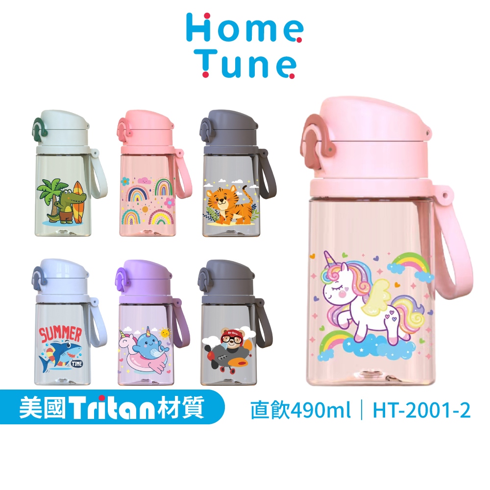 Home Tune家音 鎖扣彈蓋直飲水壺490ml|Tritan材質水壺兒童水壺運動水壺防漏水壺_HT-2001-2獨角獸(杏)|彩虹(粉)|鯊魚(藍)|鱷魚(綠)|海豚(紫)|小熊(灰)|美人魚(紫)|老虎(灰)UtensilsHome Tune家音