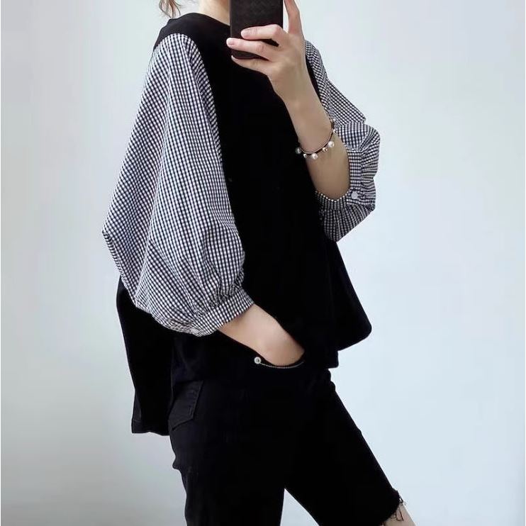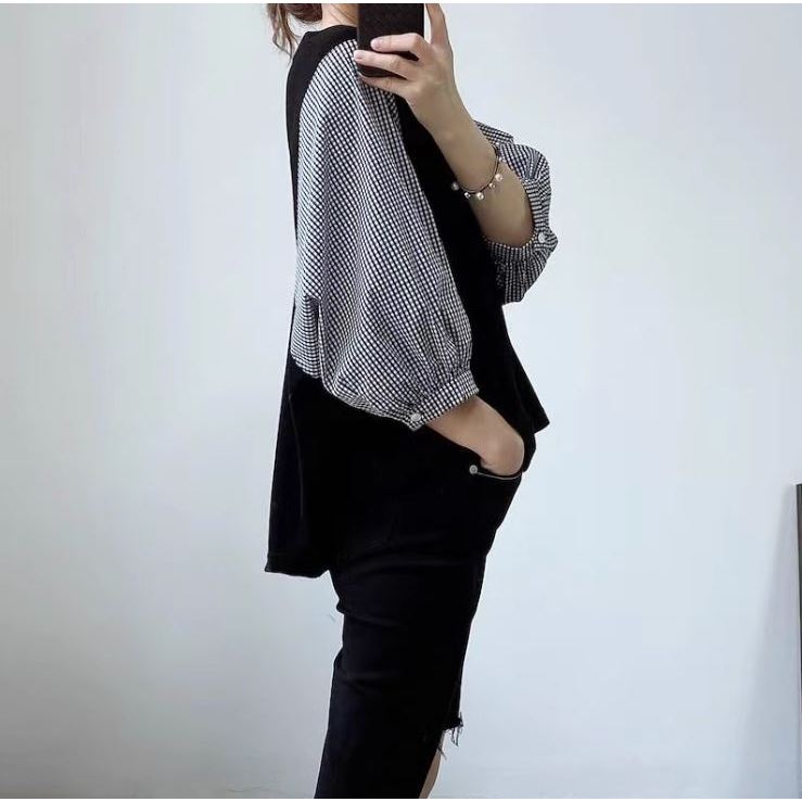 GOFO 短袖上衣 韓系穿搭 顯瘦 遮肉蝙蝠袖 異材拼接格子 圓領t恤 女生衣著 女裝上衣 夏天 夏季 女裝GOFO 短袖上衣 韓系穿搭 顯瘦 遮肉蝙蝠袖 異材拼接格子 圓領t恤 女生衣著 女裝上衣 夏天 夏季 女裝Shirts & BlousesGOFO 台灣賣家 台灣出貨 台灣現貨