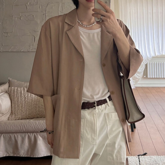 【Metanoia】🇰🇷韓製 短袖翻領西裝外套米色,F|黑色,F|藍色,FSuit Jackets & BlazersMetanoia 正韓服飾 & MdoC 總代理