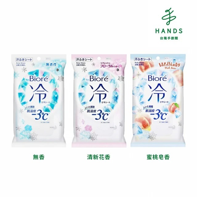 【Biore】-3℃涼感濕巾 20片(日本平輸版)|台隆手創館蜜桃皂香 20枚|無香 20枚|清新花香 20枚WipesHANDS台隆手創館|官方旗艦店