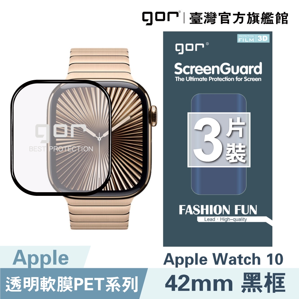 【GOR保護貼】Apple Watch 10 / S10 42mm 46mm 黑框滿版軟膜 PET 滿版 保護貼3片裝42mm|46mmWearable AccessoriesGOR保護貼官方旗艦店