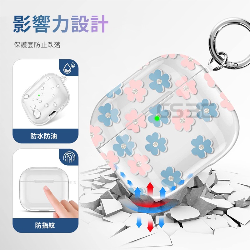 閃粉 小花 透明殼 Airpods 4/3 Pro2 Pro 2 扣環 保護套 保護殼 防摔殼 耳機殼 軟殼 防丟失