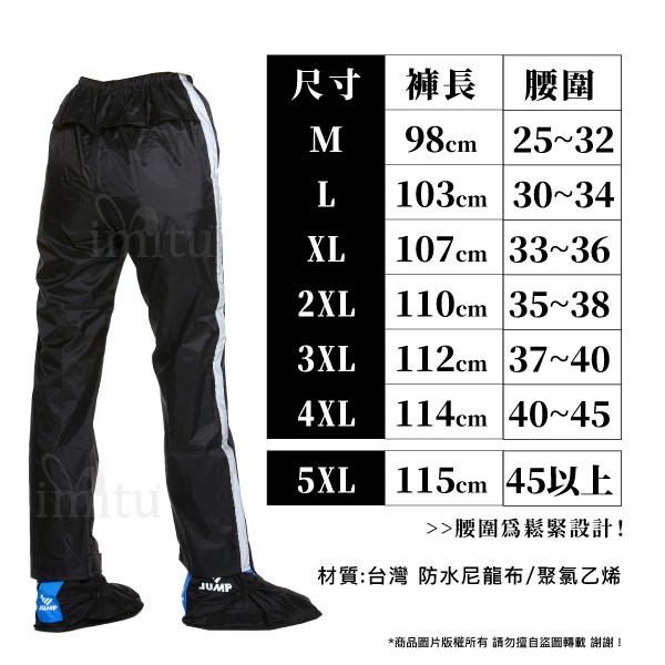 台灣現貨/ 官方正品 / 高耐水壓防水3D雨褲 防水雨褲 雙反光雨褲一般款,M|一般款,L|一般款,XL|一般款,2XL|一般款,3XL|一般款,4XL|一般款,6XL|透氣雙反光,M|透氣雙反光,L|透氣雙反光,XL|透氣雙反光,2XL|透氣雙反光,3XL|透氣雙反光,4XL|透氣雙反光,6XLRain Coatsimitu 米圖