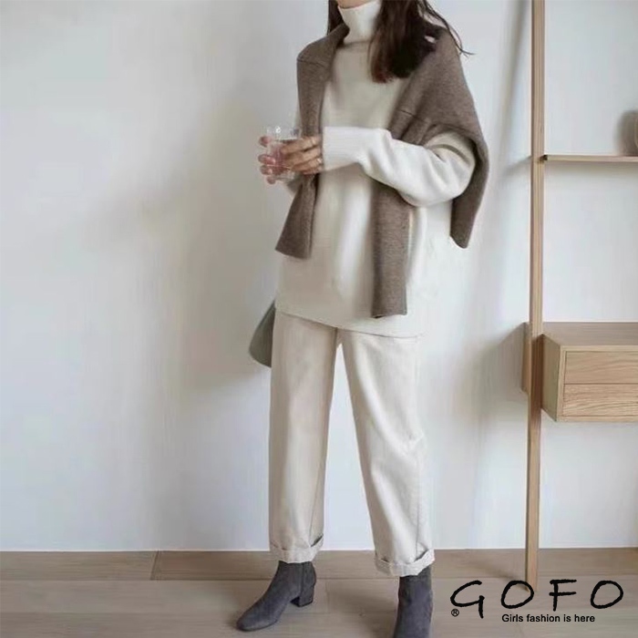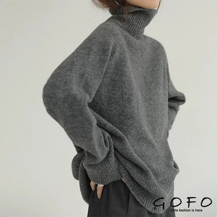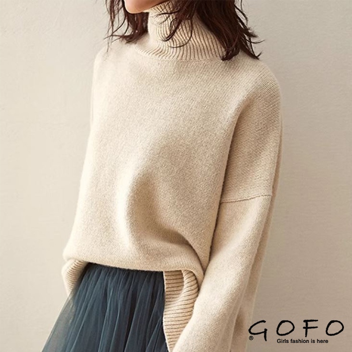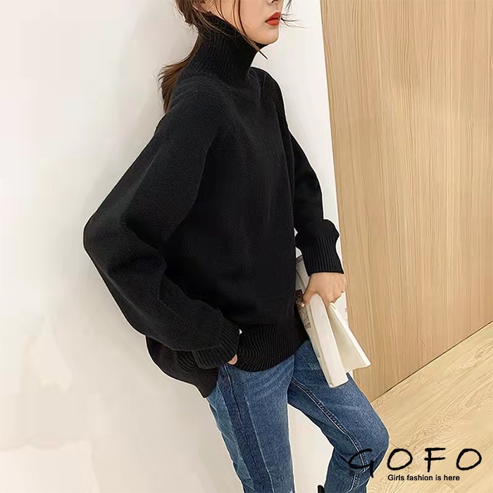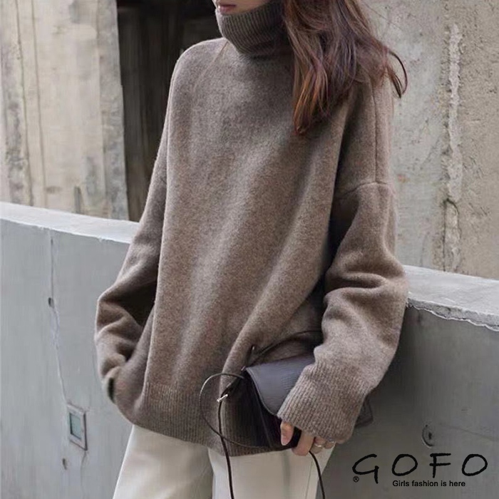 GOFO 毛衣 韓系穿搭 好質感高領上衣 慵懶極簡風 素面百搭 長袖針織衫 女裝衣服 女生冬天 冬季 寒流 保暖 上衣