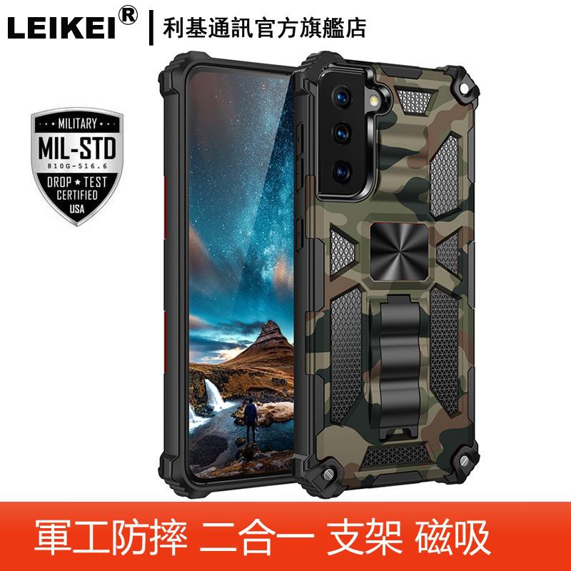 迷彩軍事防摔殼 適用:三星 s20 s21 s22 ultra s20fe s21fe 手機殼 隱形支架 新款全包保護殼