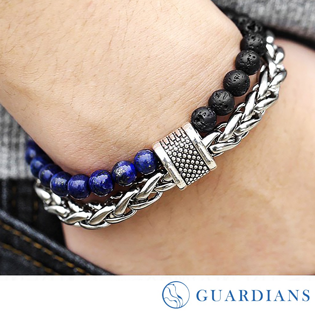 【Guardians】鈦鋼時尚珠鍊 不鏽鋼金屬/手鍊手環/歐美風/手鍊手環/金屬鍊條/串珠手環/情侶對鍊/男性配件青金石+火山石+燻黑鍊|孔雀石+火山石+燻黑鍊|白松石+黑磨砂+燻黑鍊|地圖石+黑磨砂+燻黑鍊|黑亮光+黑膽石+燻黑鍊|雪花混搭+燻黑鍊|青金石+火山石+銀麻花|虎眼+銀麻花|虎眼+黑磨砂+燻黑鍊|紅虎眼+黑磨砂+燻黑鍊Guardians嚴選