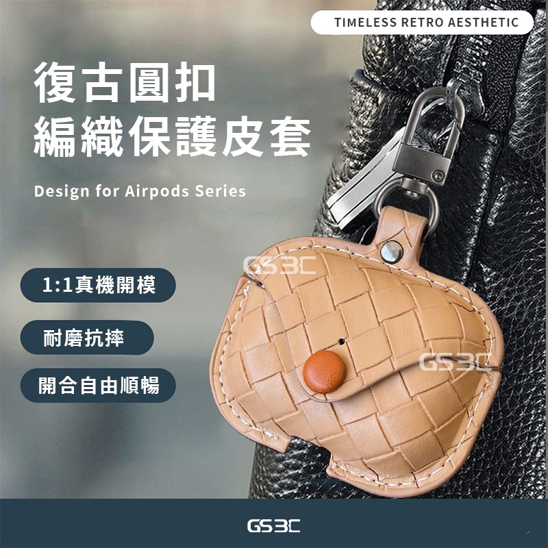 復古圓扣 編織 耳機殼 Airpods 4 Pro2 Pro 2代 防真皮 編織紋 扣環 保護套 保護殼 防丟 防摔殼