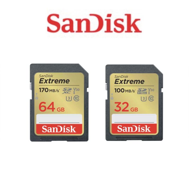 SanDisk 64G 32G EXTREME SD C10 U3 V30 記憶卡 讀100MB 寫60MB64G(R170W80)|32G(R100W60)OthersiPanic 品牌專賣