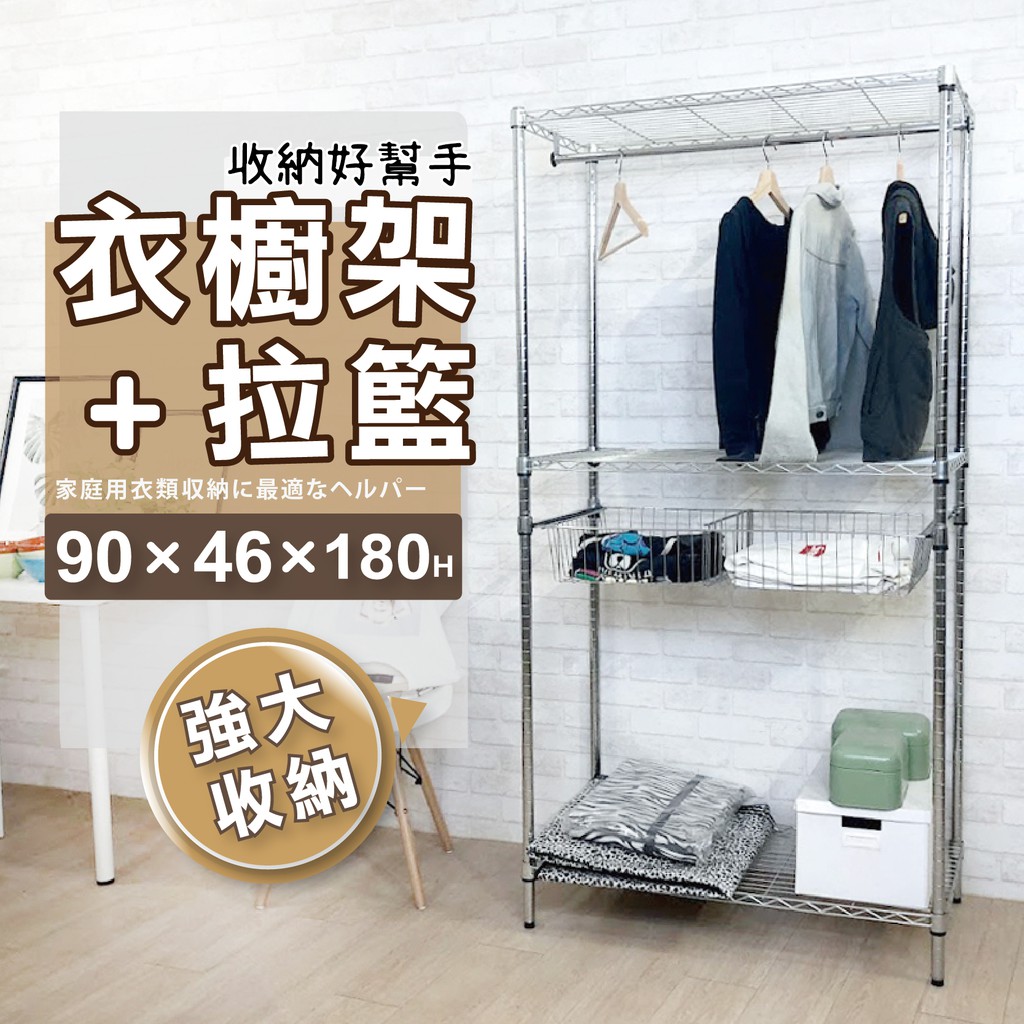 層架收納|90X46X180三層拉籃衣櫥架 收納架 鐵架 層架 鐵力士 置物架 |整體耐重150kg【KI WISH】層架收納|90X46X180三層拉籃衣櫥架 收納架 鐵架 層架 鐵力士 置物架 |整體耐重150kg【KI WISH】WardrobesKIWISH居家生活