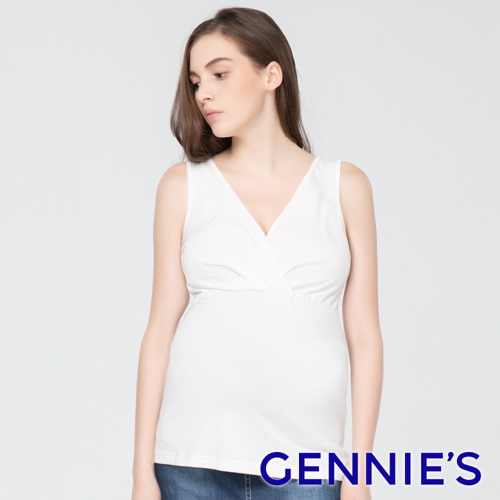 【Gennies 奇妮】V領無袖哺乳上衣-白(T3J07)S|M|L|XLBreastfeeding WearGennies 奇妮孕哺(官方旗艦店)