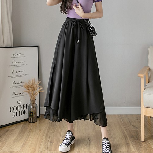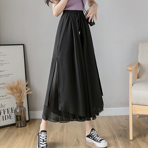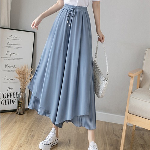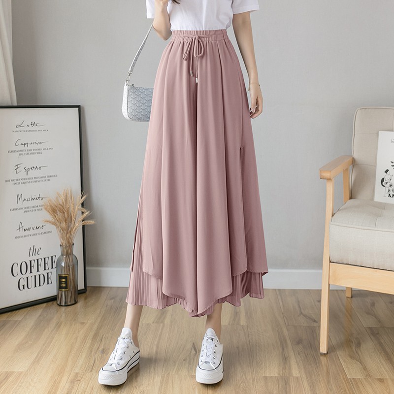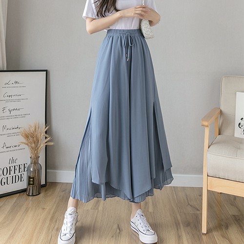 GOFO 長褲 多層次修飾 高腰 顯瘦 飄逸雪紡寬褲 八分褲 闊腿褲 女生寬褲 雪紡褲 夏季女裝 韓系穿搭 夏天冰絲
