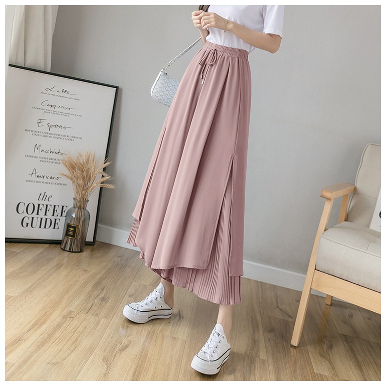 GOFO 長褲 多層次修飾 高腰 顯瘦 飄逸雪紡寬褲 八分褲 闊腿褲 女生寬褲 雪紡褲 夏季女裝 韓系穿搭 夏天冰絲黑色【建議腰圍26~32吋內】|白色【建議腰圍26~32吋內】|藍色【建議腰圍26~32吋內】|粉色【建議腰圍26~32吋內】PantsGOFO 台灣賣家 台灣出貨 台灣現貨