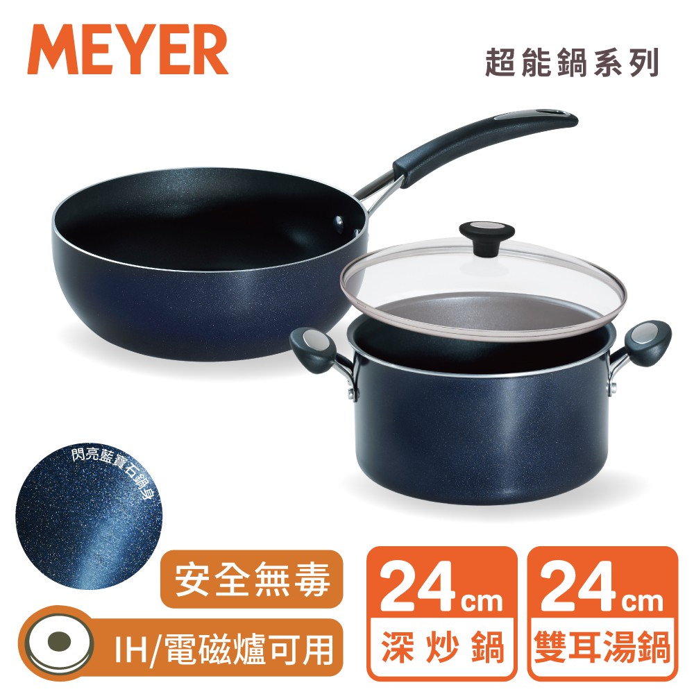 【MEYER 美亞】超能耐磨系列 IH藍寶石導磁不沾鍋 24CM雙鍋組(深炒鍋+湯鍋)