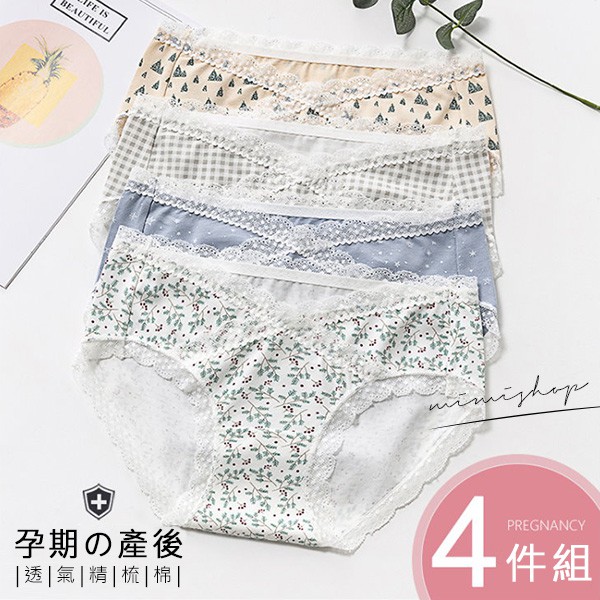 小清新4件組 透氣精梳棉 低腰蕾絲孕婦內褲 MIMI別走孕婦裝【P71027】如圖,M|如圖,LOthersMIMI別走孕婦裝哺乳衣