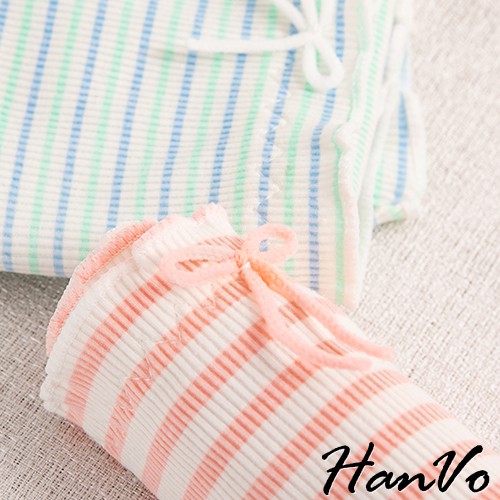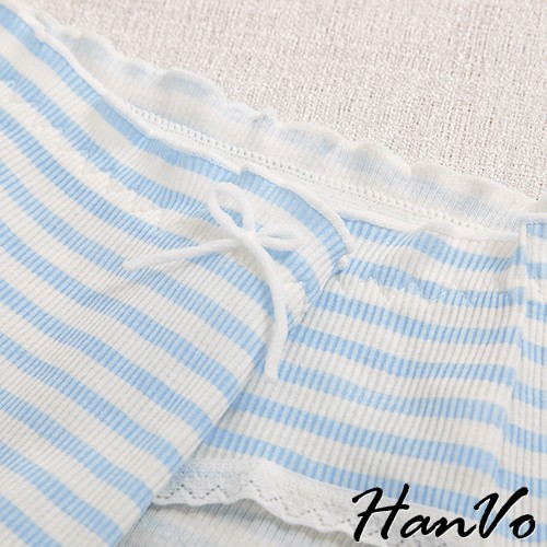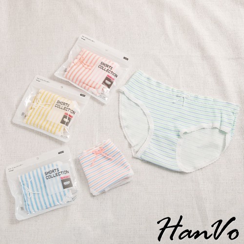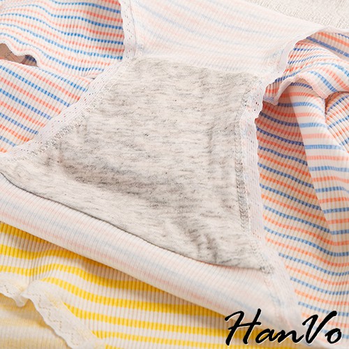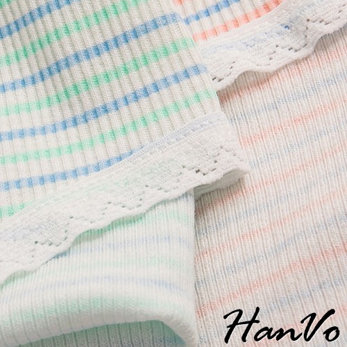 【HanVo】粉嫩糖果色條紋花邊棉質中腰內褲 甜美舒適彈性少女日系三角褲 親膚透氣流行內褲內著 A11-5557黃色條紋|綠藍條紋PantiesHanVo Wear Collection