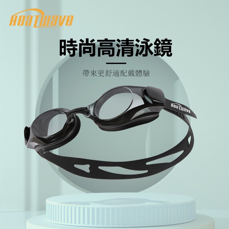 Heatwave熱浪 泳鏡防霧裝備男女通用青少年游泳大框時尚不透水黑色平光眼鏡