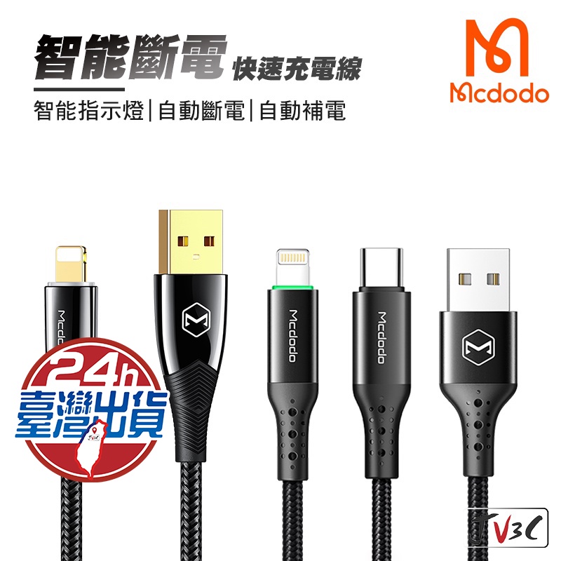 麥多多 Mcdodo 智能充電傳輸線 適用iPhone 蘋果Lightning 安卓Type-C 充電線 自動斷電 快充