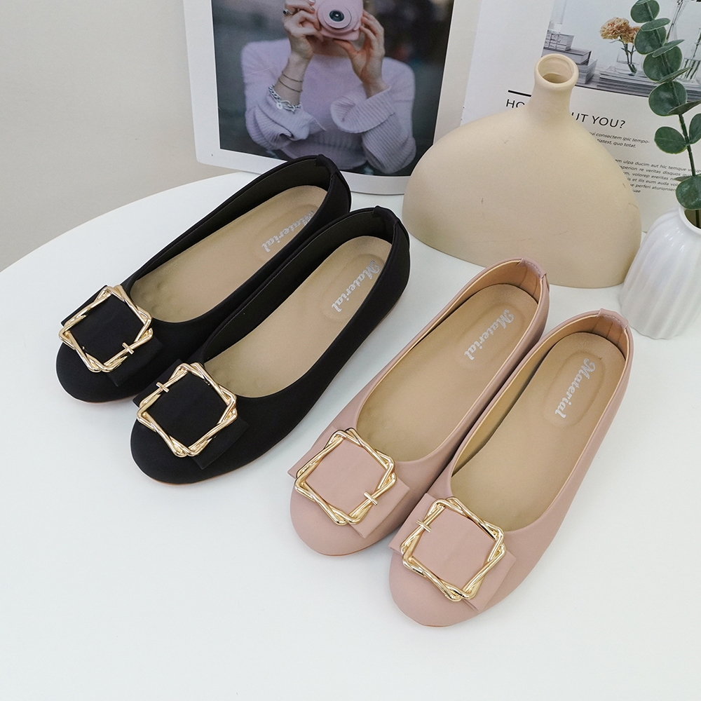 Material瑪特麗歐 TG53133 【加大尺碼25.5-27】 女鞋 包鞋 MIT加大尺碼簡約方釦平底鞋黑色25.5|黑色26|黑色26.5|黑色27|粉色25.5|粉色26|粉色26.5|粉色27Ballet FlatsMaterial 瑪特麗歐 台灣製女鞋品牌 旗艦店
