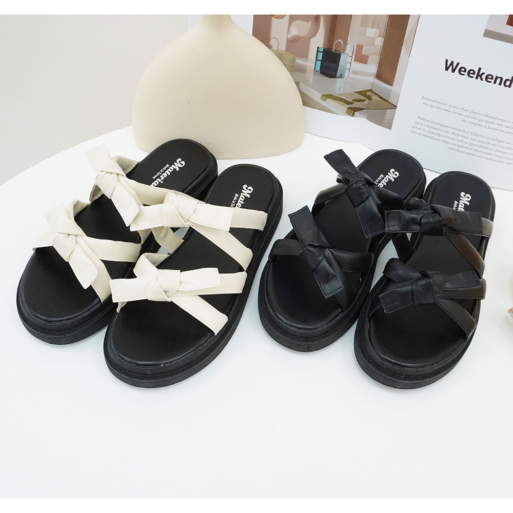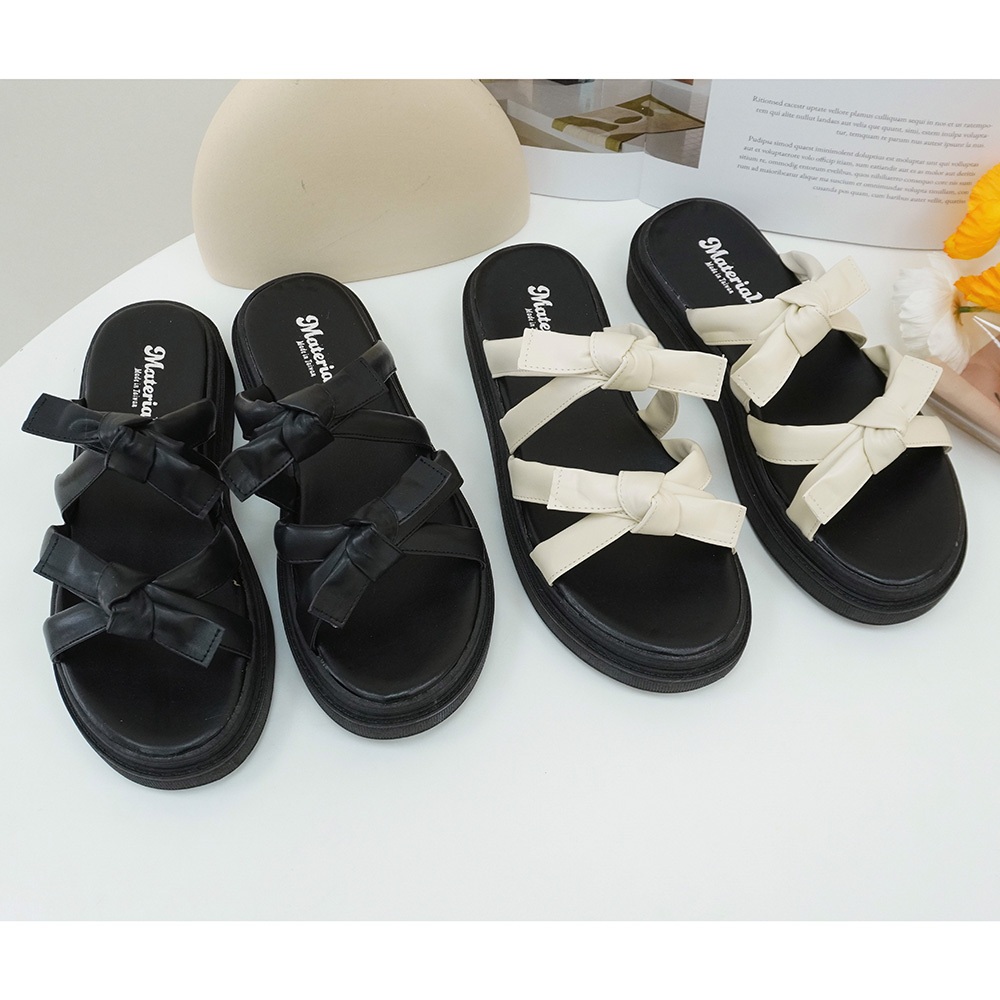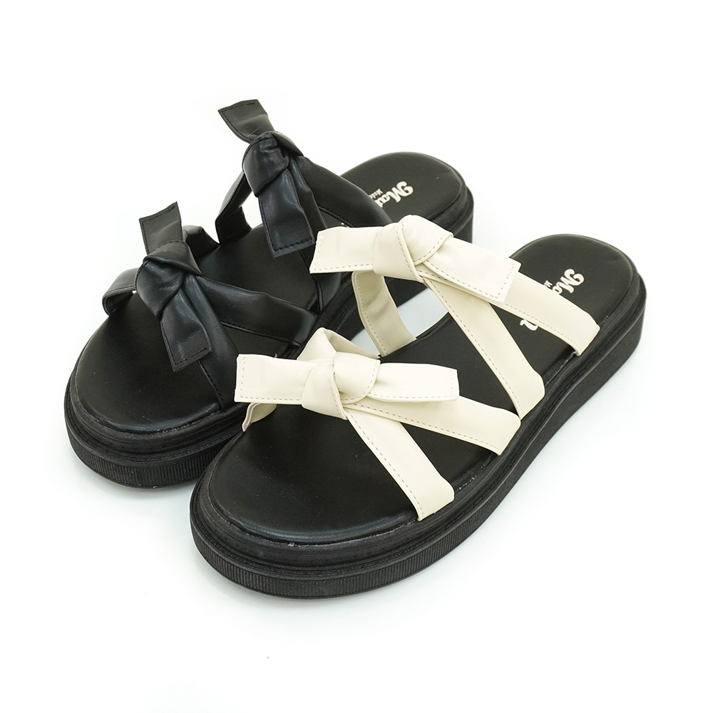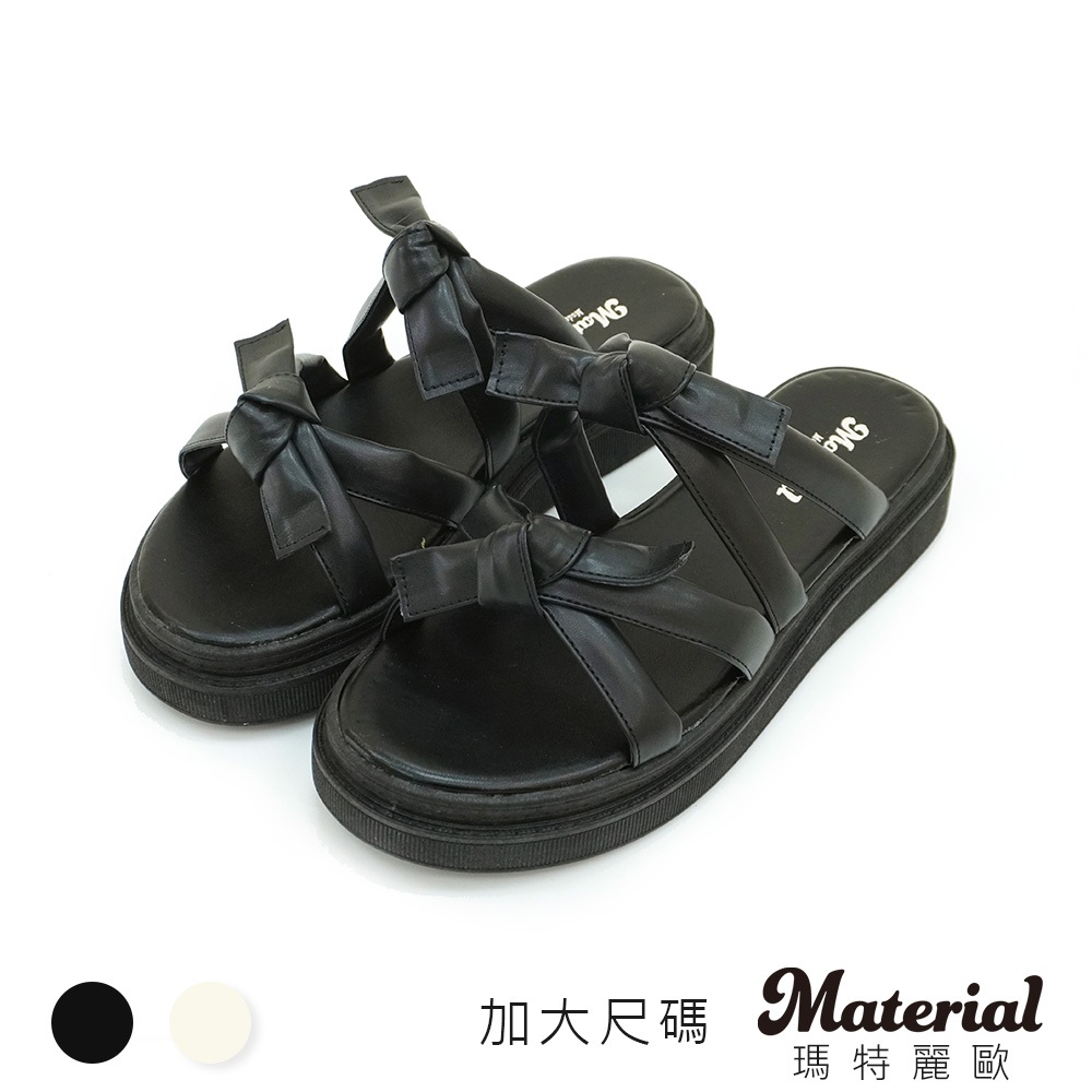 Material瑪特麗歐 TG54520 【加大尺碼25.5-27】 女鞋 拖鞋 MIT雙帶蝴蝶結厚底拖鞋黑色25.5|黑色26|黑色26.5|黑色27|米色25.5|米色26|米色26.5|米色27Flat SandalsMaterial 瑪特麗歐 台灣製女鞋品牌 旗艦店