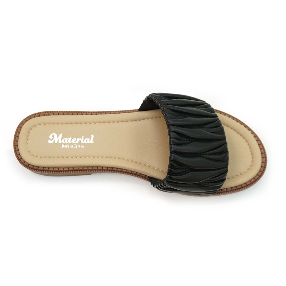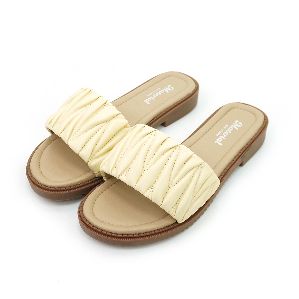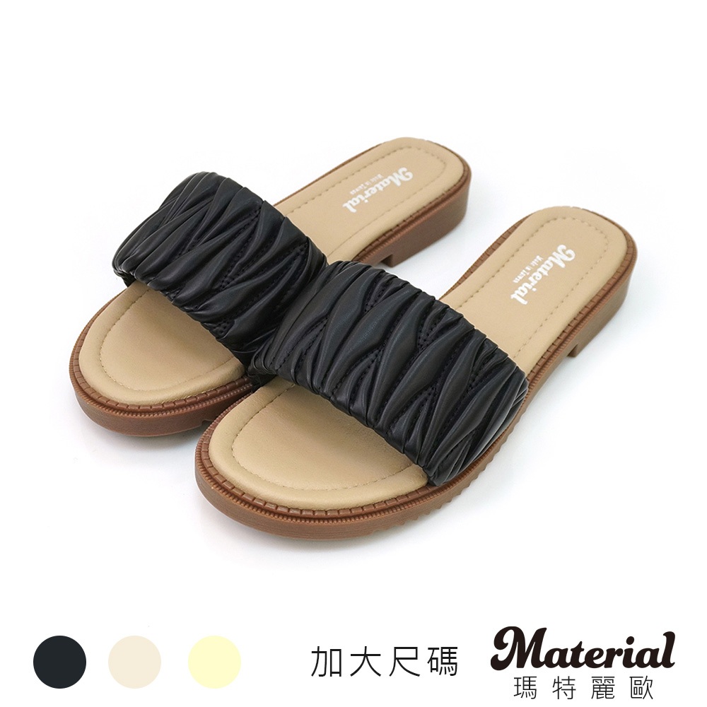 Material瑪特麗歐 TG52082 【加大尺碼25.5-27】 女鞋 拖鞋 MIT加大尺碼寬帶抓皺平底拖鞋黑色25.5|黑色26|黑色26.5|黑色27|黃色25.5|黃色26|黃色26.5|黃色27|米色25.5|米色26|米色26.5|米色27Flat SandalsMaterial 瑪特麗歐 台灣製女鞋品牌 旗艦店