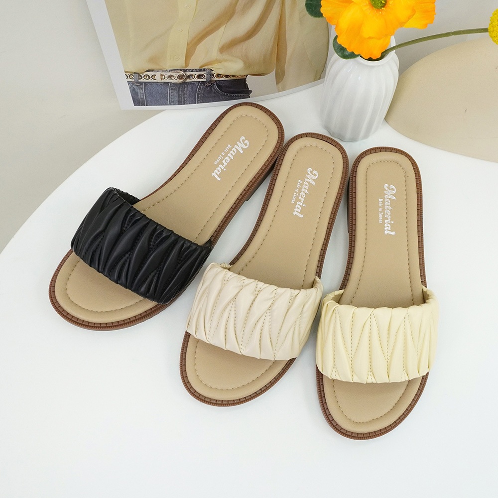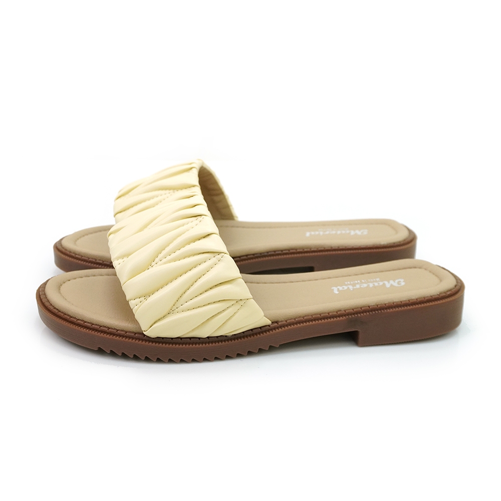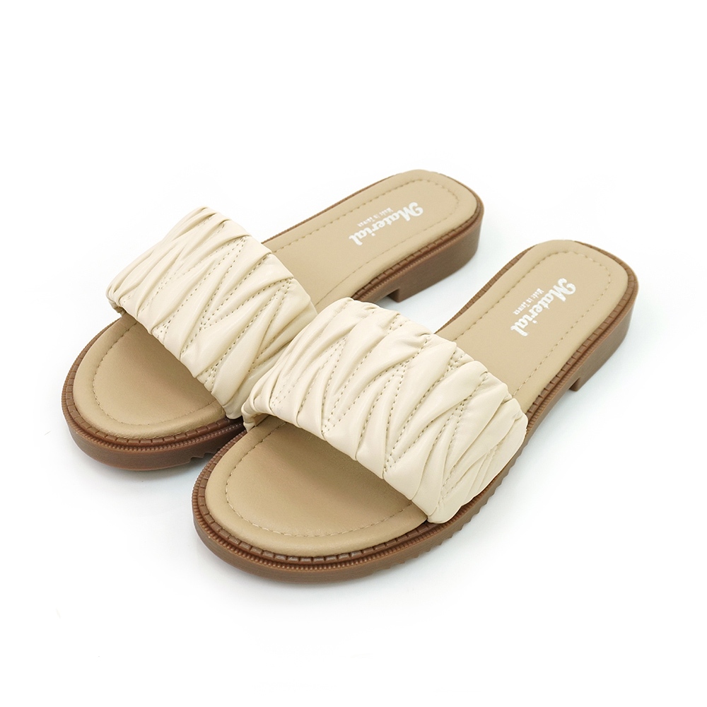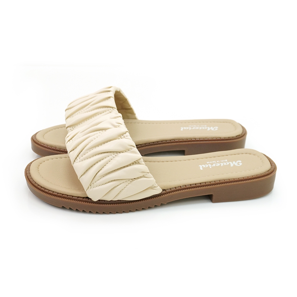 Material瑪特麗歐 TG52082 【加大尺碼25.5-27】 女鞋 拖鞋 MIT加大尺碼寬帶抓皺平底拖鞋黑色25.5|黑色26|黑色26.5|黑色27|黃色25.5|黃色26|黃色26.5|黃色27|米色25.5|米色26|米色26.5|米色27Flat SandalsMaterial 瑪特麗歐 台灣製女鞋品牌 旗艦店