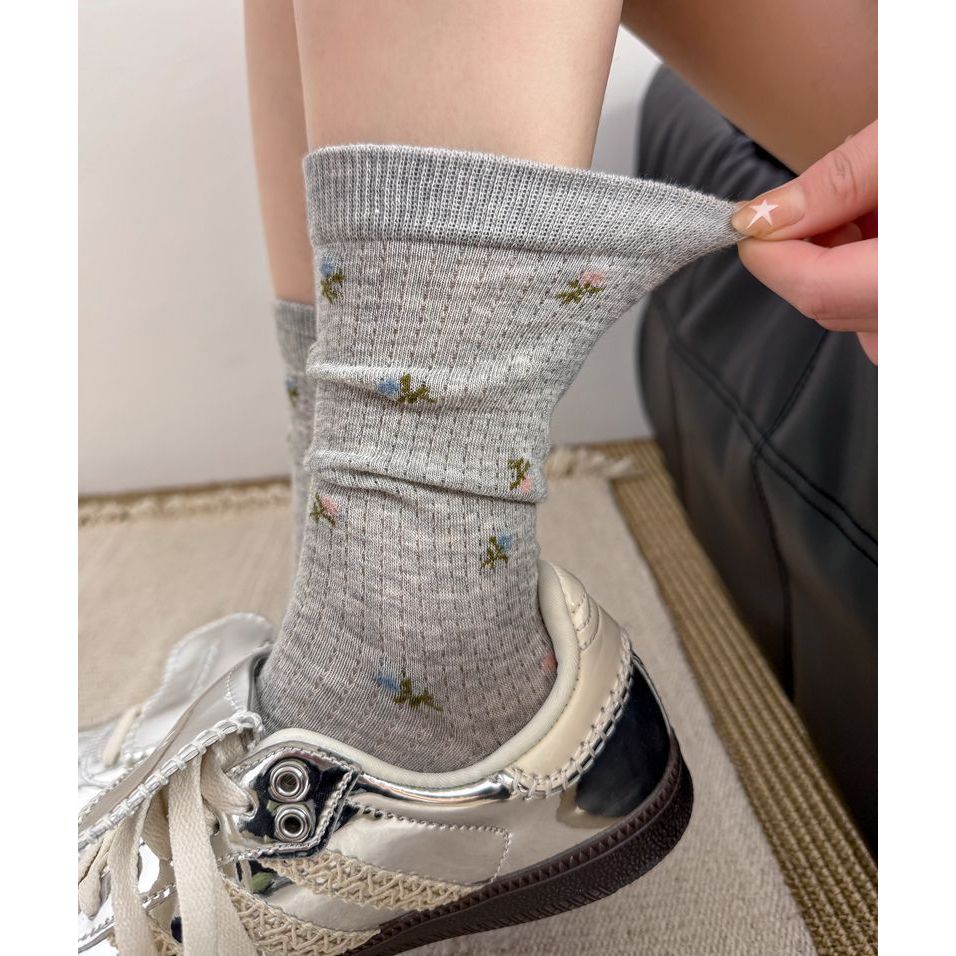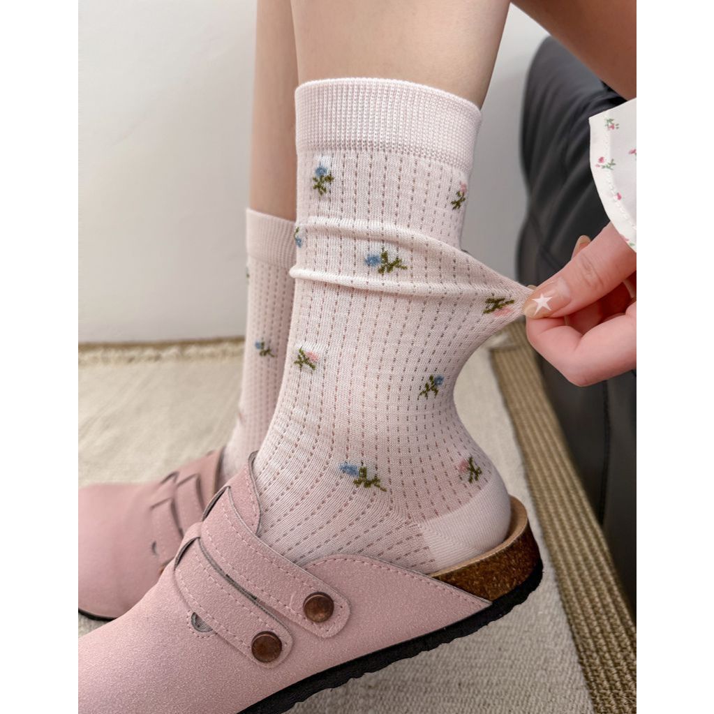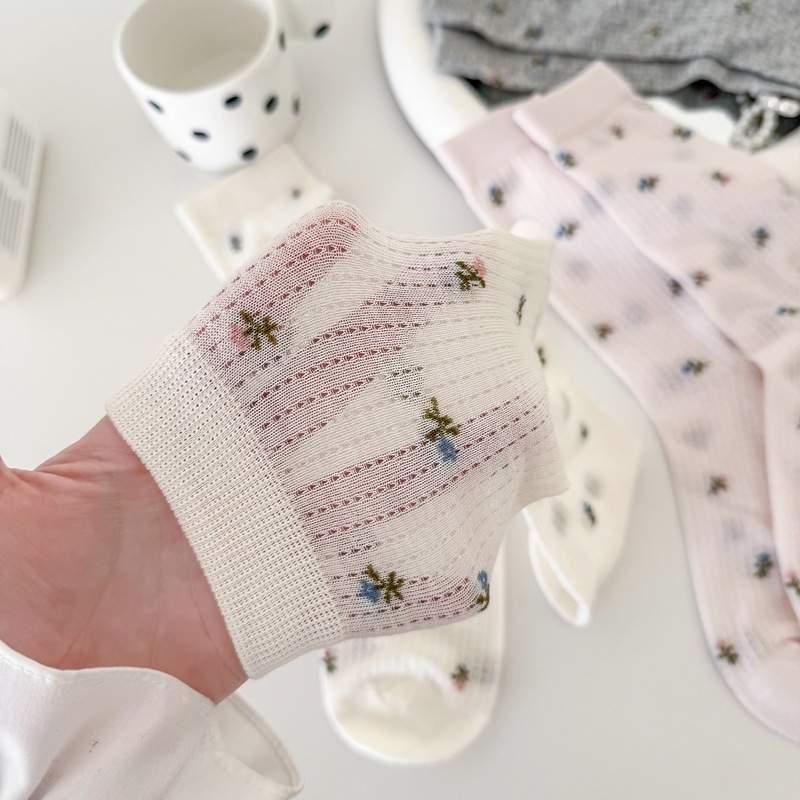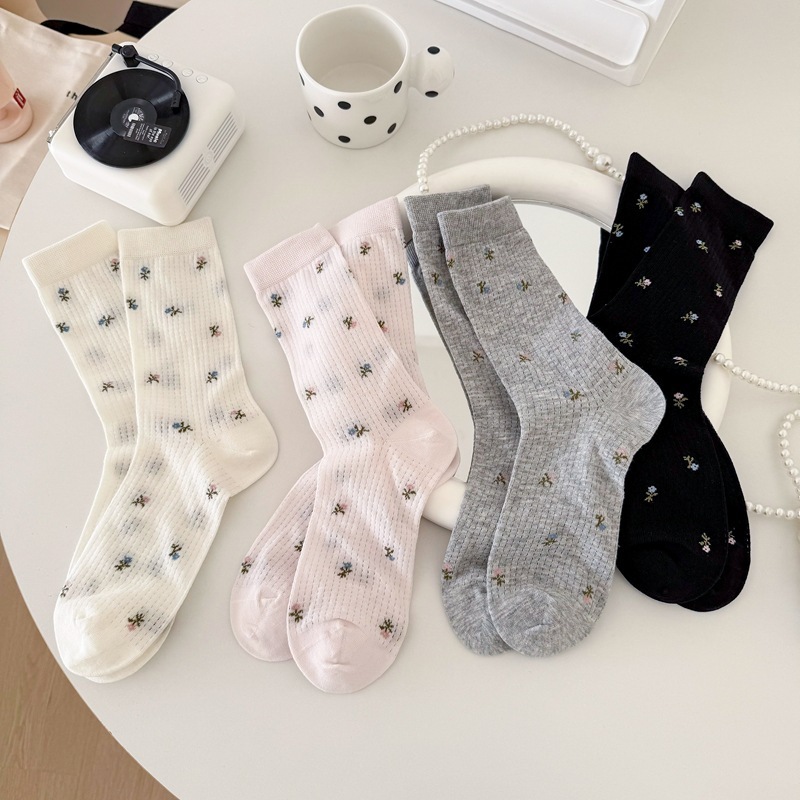 Material瑪特麗歐 薄款碎花中筒襪 K3037黑色|白色|粉色|灰色SocksMaterial 瑪特麗歐 台灣製女鞋品牌 旗艦店
