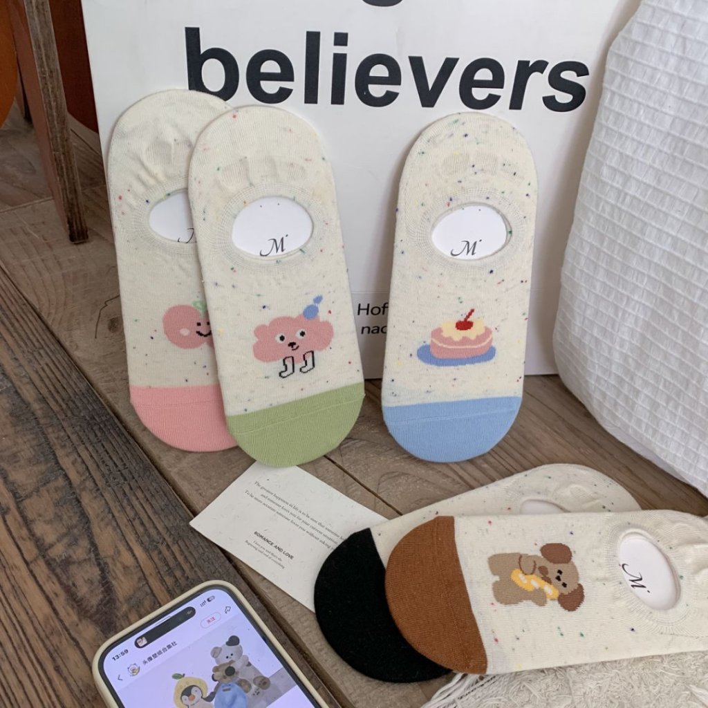Material瑪特麗歐 薄款卡通船型襪 (5入一組) K1047黑色|粉色|藍色|綠色|咖啡|5入一組SocksMaterial 瑪特麗歐 台灣製女鞋品牌 旗艦店