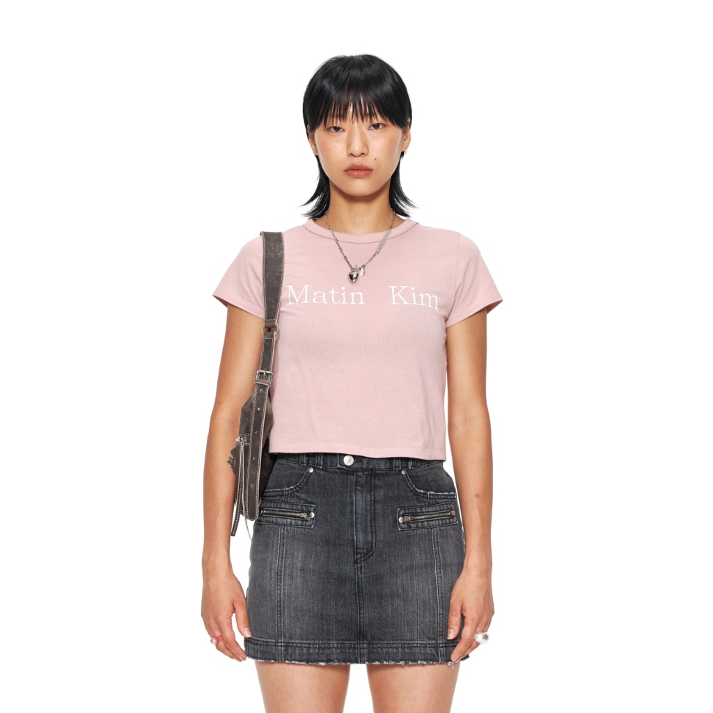 【MATIN KIM】LOGO短版上衣 粉色粉色,S|粉色,MT-shirtsMATIN KIM 官方旗艦店