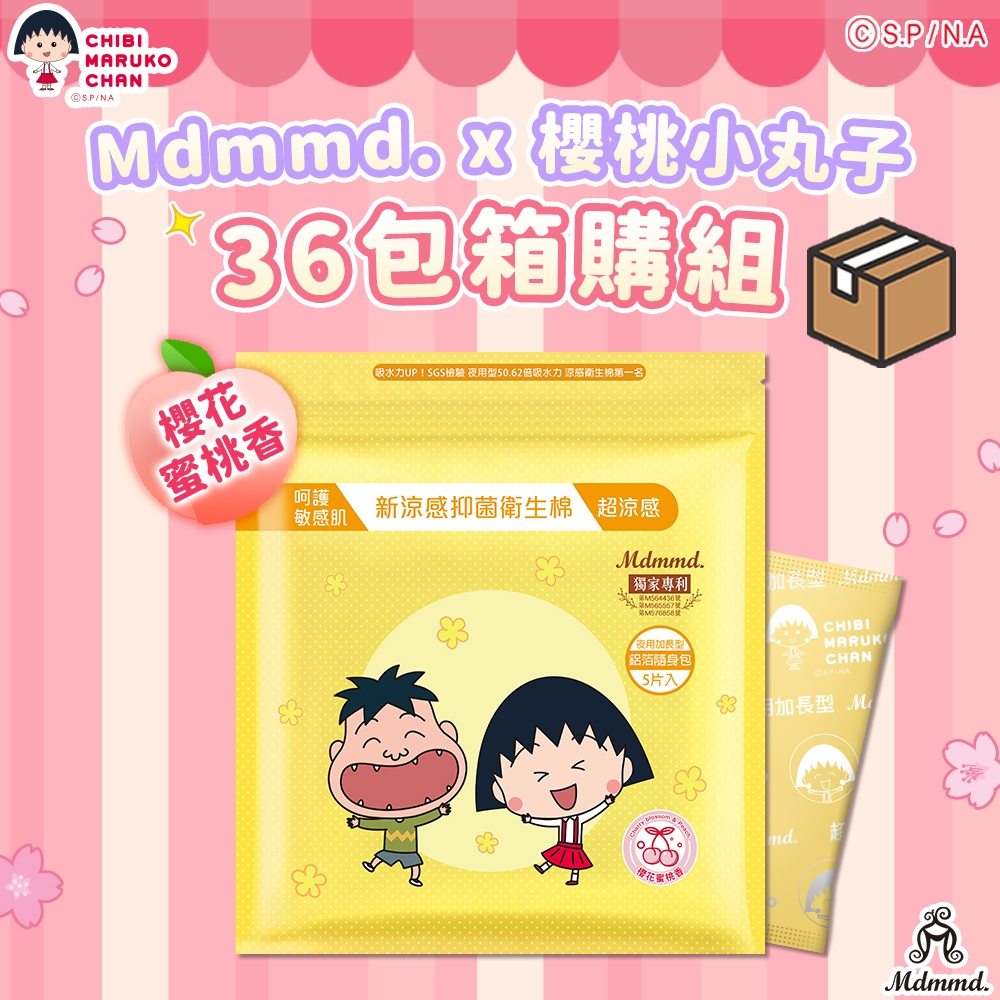 Mdmmd. x 櫻桃小丸子聯名限量衛生棉-超涼感櫻花蜜桃香夜用加長型 41cm/5片 36包箱購組【官方直營】超涼感夜用加長型41cm 36包箱購組Feminine CareMdmmd.明洞國際-官方旗艦店