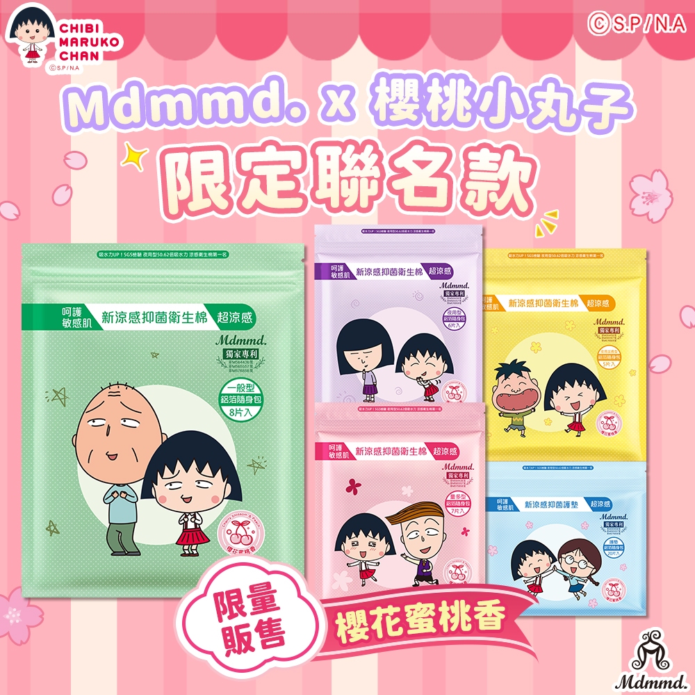 Mdmmd. x 櫻桃小丸子聯名限量衛生棉-超涼感櫻花蜜桃香【官方直營】超涼感一般型【超取上限30包】|超涼感量多型【超取上限30包】|超涼感夜用型【超取上限30包】|超涼感夜用加長型【超取上限30包】|超涼感護墊【超取上限30包】Feminine CareMdmmd.明洞國際-官方旗艦店