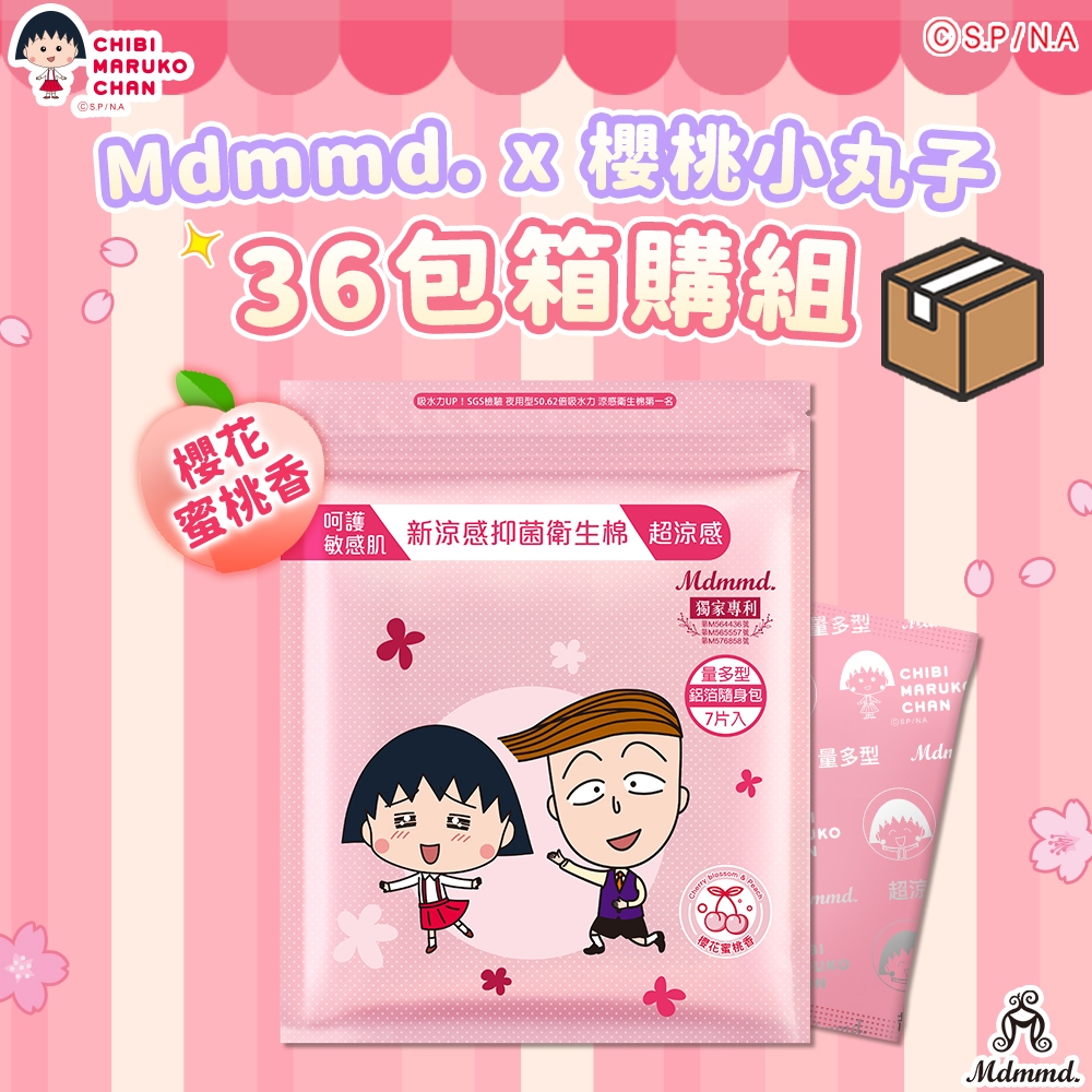 Mdmmd. x 櫻桃小丸子聯名限量衛生棉-超涼感櫻花蜜桃香量多型 28cm/7片 36包箱購組【官方直營】超涼感量多型28cm 36包箱購組Feminine CareMdmmd.明洞國際-官方旗艦店