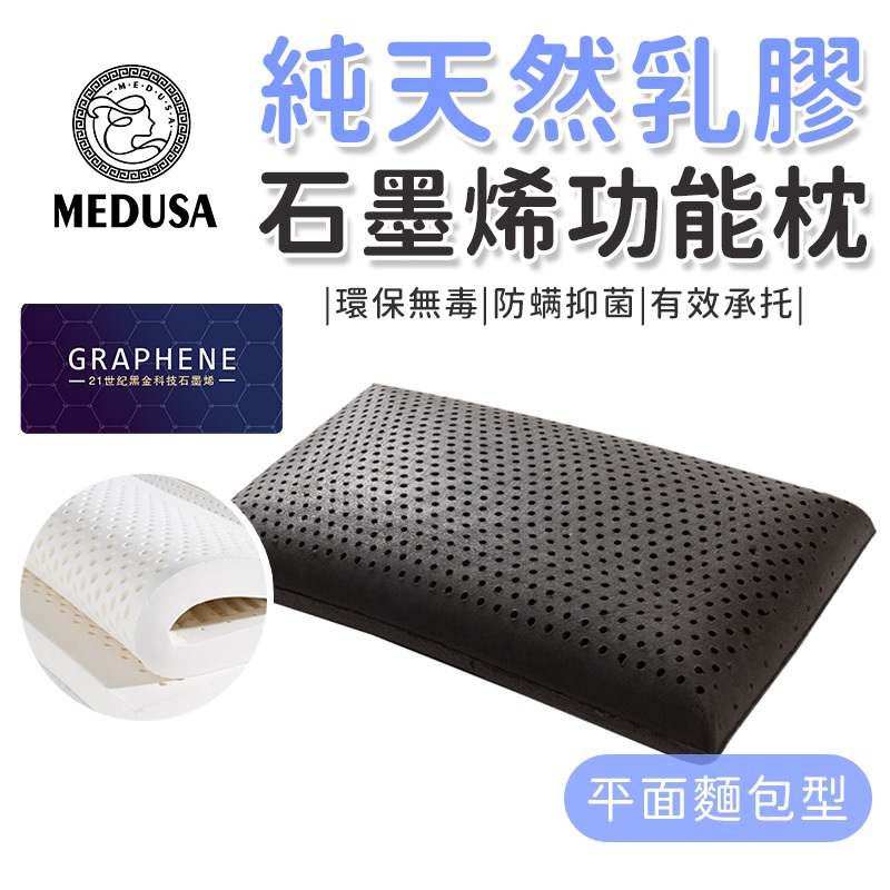 【MEDUSA美杜莎】 天然石墨烯乳膠枕 平面麵包枕 乳膠枕 石墨烯 泰國乳膠 平面麵包 枕頭 功能枕石墨烯乳膠枕-平面麵包枕PillowsMEDUSA美杜莎寢具【官方旗艦店】