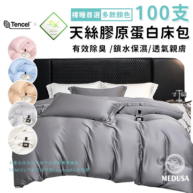 【MEDUSA美杜莎】100支膠原蛋白100%涼感天絲床包組 兩用被套組 涼感床包 天絲床單 素色床包 被套 保潔墊