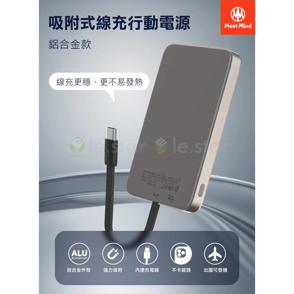 Meet Mind 吸附式線充行動電源-鋁合金款 Type-C 行動電源 自帶線 磁吸 吸附式 輕薄 強力吸附