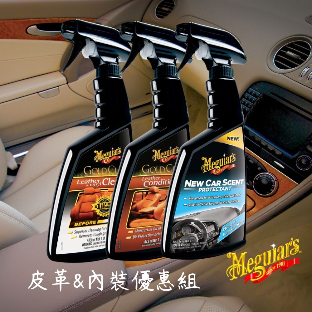 Meguia’s 美光 皮革內裝優惠組 皮革清潔 皮革保養 內裝保養 美克拉代理金鑽皮革滋潤乳+新車香氛儀表板保護劑|金鑽皮革清潔潤澤組+新車香氛儀表板保護劑Interior CareMeguiars美光台灣總代理-美克拉